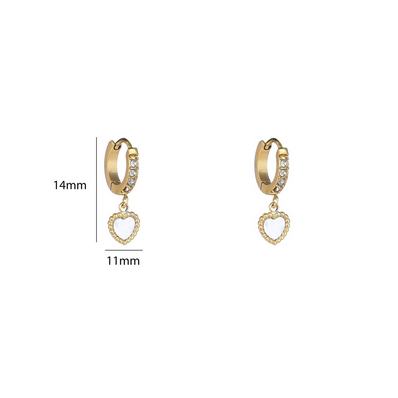 Go Dutch Label oorbellen strass hoop parlemoeren hartje - 14k
