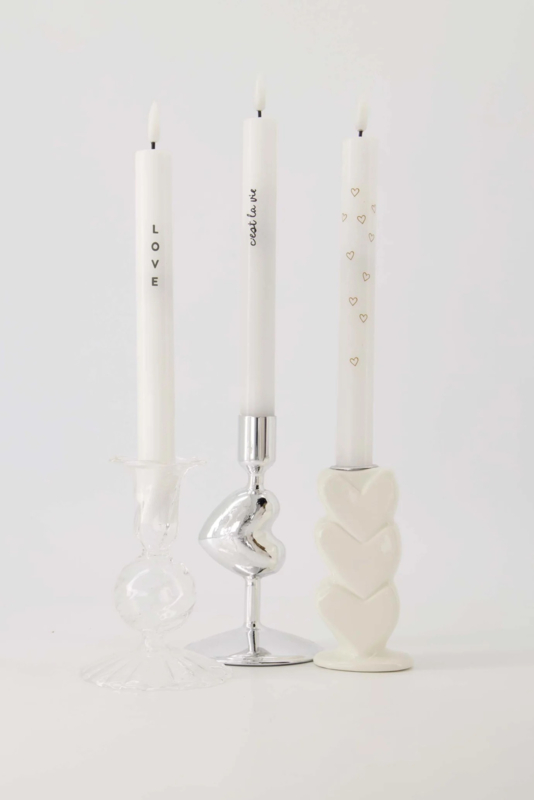 Deze Zusss ledkaarsen set brengt warmte en charme in je woonkamer. De ledkaarsen zijn wit met subtiele rood en groengekleurde hartjes, perfect voor een gezellig tintje zonder gedoe. De set van 2 ledkaarsen 'love' is ideaal voor wie sfeer wil creëren zonder vlam en rook. Met deze Zusss ledkaarsen haal je een basic, stoer en uniek accent in huis dat altijd brandt zonder zorgen.