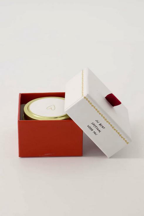 Een geurkaarsje tinnen in doosje van Zusss met de tekst 'jij bent speciaal voor mij'. Soms moet het even gewoon gezegd worden.