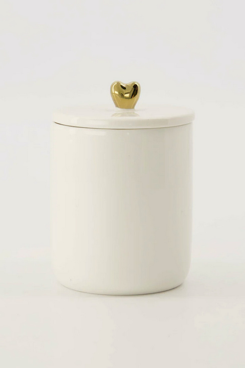 Artikelnummer: 0607-0007 OverzichtZusss bewaarpot keramiek smal hartje wit/goud