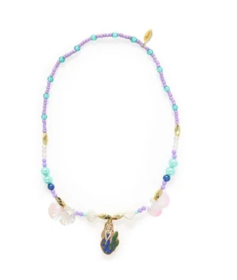 Artikelnummer: DD05760 OverzichtDuik in de magische wereld van de oceaan met de Alizée-ketting. Bestaat uit acryl kralen en drie betoverende bedeltjes: een zeemeermin van geëmailleerd metaal en twee acryl schelpen. Deze ketting combineert elegantie en betovering. De dubbele elastische draad zorgt voor optimale stevigheid en maakt het omdoen gemakkelijk, zonder sluiting.