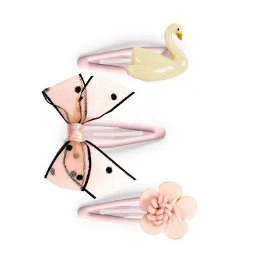 Artikelnummer: DD05783 OverzichtGeef je kapsel een gracieus en poëtisch tintje met de set haarspeldjes Violette. Bestaat uit drie metalen haarspeldjes versierd met een acryl zwaan, een tule strik en een imitatieleren bloem. Perfect om je stijl met finesse en elegantie te verfraaien.