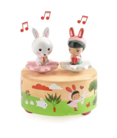 Artikelnummer: DJ06066 OverzichtGarden Melody is een prachtig geïllustreerde ronde magnetische muziekdoos met twee schattige figuurtjes: een konijn en een klein meisje. Draai eenvoudigweg de sleutel op, en de figuurtjes beginnen te draaien en te dansen op de klanken van "Schuberts Wiegenlied".