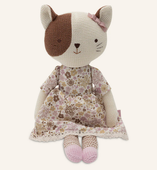 Deze schattige knuffel is helemaal klaar voor knuffels en avontuur! Het zachte gebreide lijfje maakt deze knuffel heerlijk om mee te knuffelen, terwijl de vrolijke uitstraling altijd een glimlach op het gezicht van je kleintje tovert. De knuffel zit stevig rechtop, zodat die ook een leuke decoratie is voor de babykamer. De perfecte knuffelvriend voor je kleintje!