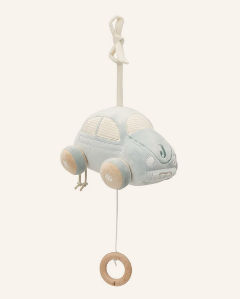 Laat je kleintje wegdromen met onze schattige On the Go muziekhanger in de vorm van een autootje. Deze zachte Sea Green gekleurde auto heeft verschillende biscuit gekleurde wielen en raampjes van ribstof! Door aan het koordje te trekken hoort jouw mini het rustgevende nummer lullaby. Deze muziekhanger is de perfecte metgezel om je baby in slaap te wiegen met een vleugje zachtheid en de betoverende klanken van deze fijne melodie!