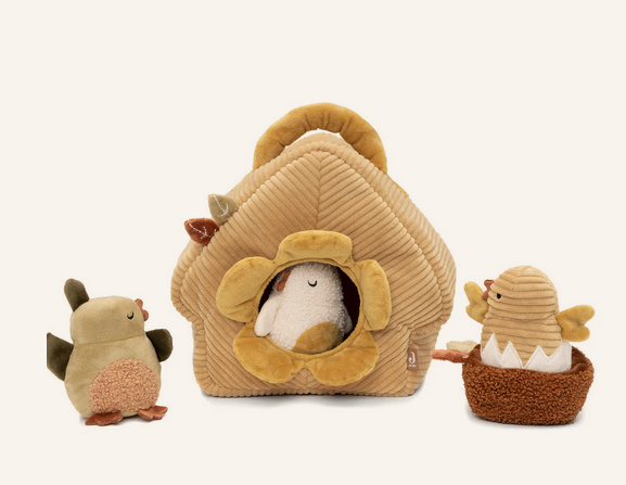 De set bevat drie schattige vogeltjes – Lulu, Chirp en Feather – die verstopt kunnen worden in een groot vogelhuis. Dit huis is prachtig versierd met blaadjes, heeft een speelse bloemenopening en een knispergeluid voor extra speelplezier. Lulu is een kleine ontdekkingsreiziger die altijd op zoek is naar een nieuw avontuur. Chirp is een vrolijke zanger die de hele dag door kleine tweets en blije geluidjes maakt. Feather is een speels vogeltje dat het liefst dansend door de lucht gaat. Dankzij het handige hengseltje neem je het vogelhuis overal mee naartoe. Een perfect (kraam)cadeau voor nieuwsgierige mini’s!