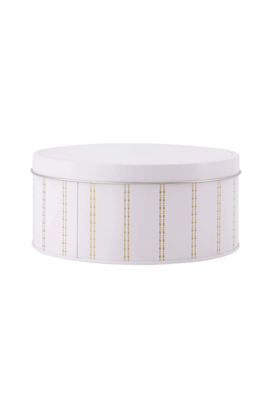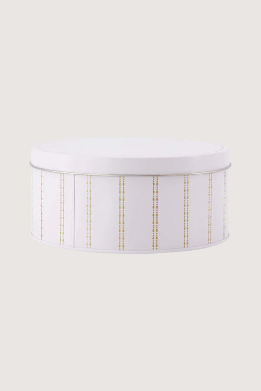 Dit Zusss koekblik is perfect voor het bewaren van je favoriete koekjes. Het koekblik heeft een wit design met fijne okerkleurige strepen, wat het een warme en tijdloze uitstraling geeft. Gemaakt van hoogwaardig metaal, is het koekblik stevig en duurzaam. Met een afmeting van Ø 15 cm x 7 cm is het compact genoeg voor elk keukenoppervlak. Bewaar je lekkernijen stijlvol en praktisch met dit koekblik, dat ook mooi combineert met andere. Voeg liefde toe aan je keuken met dit functionele en sfeervolle koekblik. Combineer het koekblik met andere items uit de koken en tafelen collectie.