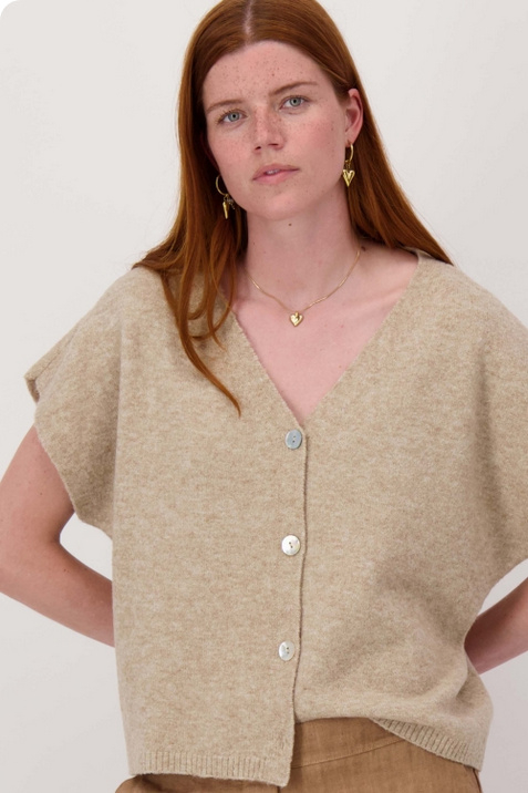 Artikelnummer: 0306-0012-0020 Overzichtzusss v-hals vestje in melange garens