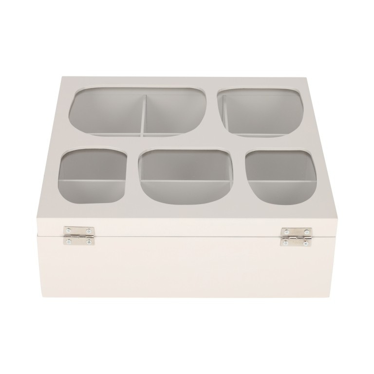 Geniet van ieder theemoment met deze theedoos. De theedoos combineert een strak, modern design met organisch gevormde ruitjes voor een subtiele, natuurlijke touch. De vier compartimenten bieden ruimte aan verschillende theesoorten, zodat je favoriete smaken altijd binnen handbereik zijn.