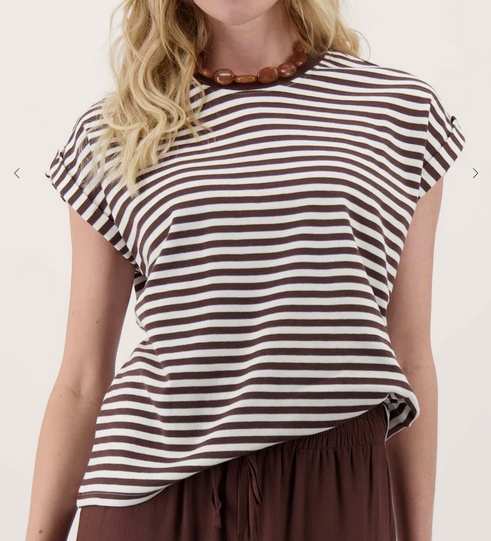 zusss T-shirt met opgerolde mouw streep off white/bruin