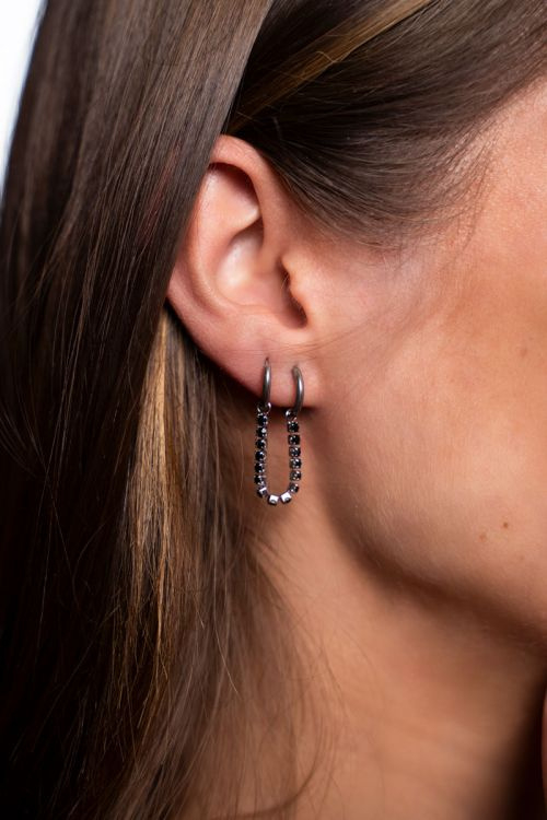 my jewellery oorbel | MOOD oorring met zwarte stenen zilver