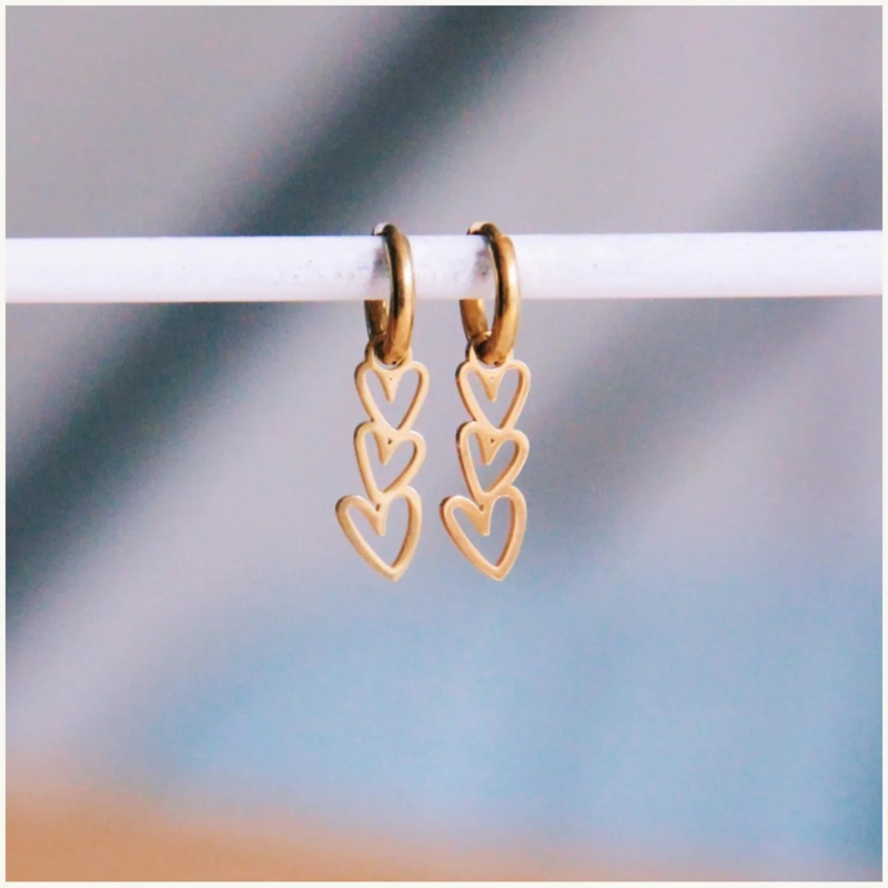 bazou creolen met 3 schuine hartjes goudbazou creolen met 3 schuine hartjes goudWil je graag on-trend de deur uit? Deze oorbellen geven een extra dimensie aan je outfit. Door het basic uiterlijk zijn deze oorringen erg leuk en makkelijk te combineren met andere…