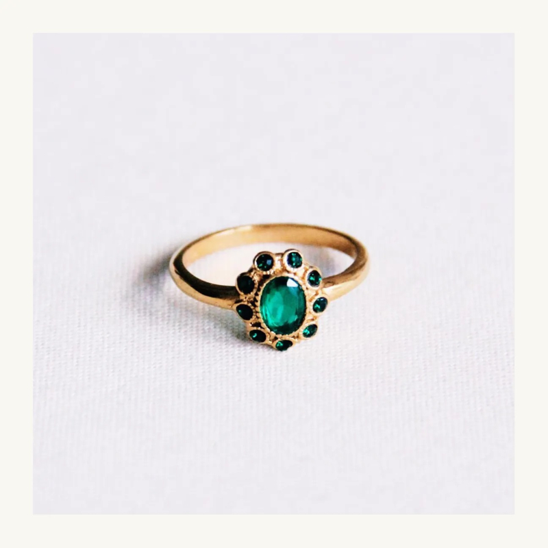 bazou vintage ring met groene steentjes maat 17bazou vintage ring met groene steentjesWij zijn helemaal weg van deze ring. Draag deze los of combineer met andere ringen om een leuke mix te creëren. Door de mooie steen heeft de ring een unieke uitstraling! Voeg deze snel toe…