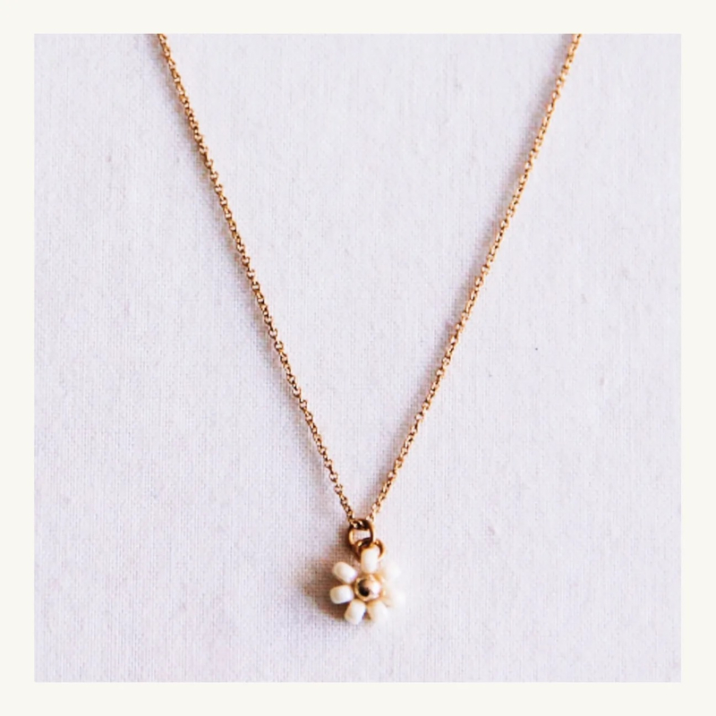 bazou fijn kettinkje met daisy flower crèmeBazou fijn kettinkje met daisy flower crèmeZeer mooie en elegante ketting die makkelijk te combineren is met jouw outfit & andere sieraden. Deze ketting mag niet ontbreken in jouw jewelry stack! Het heeft heeft een subtiele…