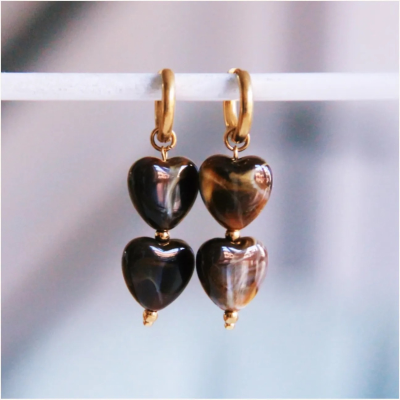 bazou creool met 2 resin harten bruinbazou creool met 2 resin harten bruinHot item! XL stenen zijn niet meer weg te denken en geven iedere outfit een classy uitstraling. Gooi je haren omhoog zodat deze oorbellen goed zichtbaar zijn en combineer ze met subtiele…