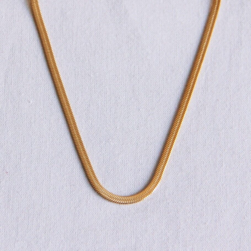 bazou platte “Snake” ketting goudkleurBazou platte “Snake” ketting goudkleurDeze platte “snake” ketting is perfect te combineren met onze andere kettinkjes. Natuurlijk kan deze toffe ketting ook alleen gedragen worden. Maak je outfit af met deze beauty!