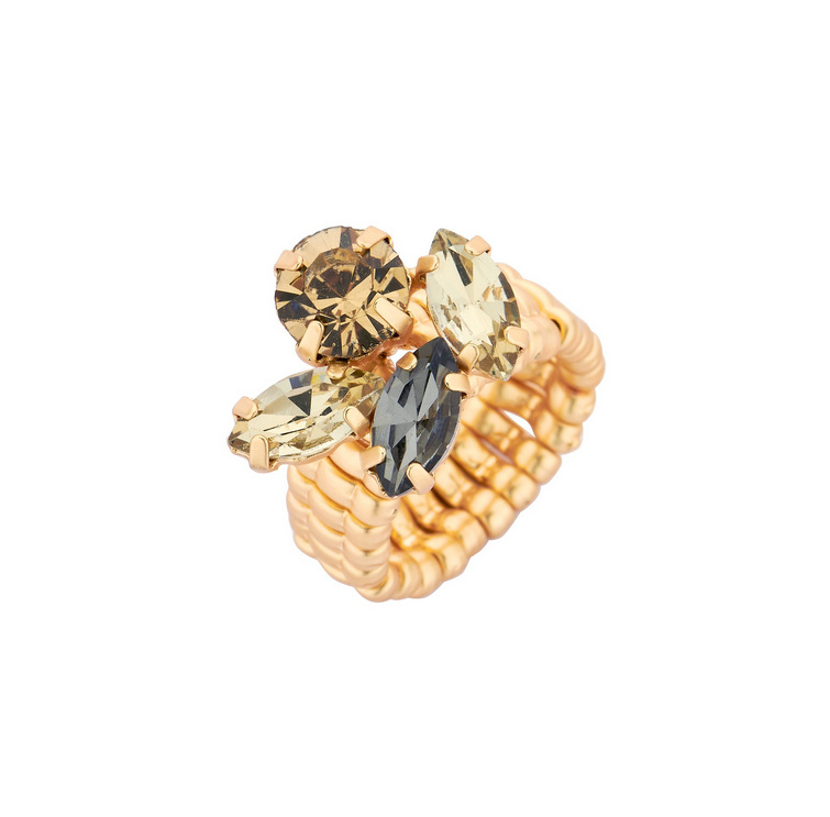 biba ring metaal en crystal stenen bruinHet leven kan zo simpel zijn met gewoon een stretch ring op elastiek die dan zomaar om heel veel vingers past. Ook bij de dames die vinden dat ze grote knokkels hebben en dat dan geen enkele ring goed past. Nu dus wel!