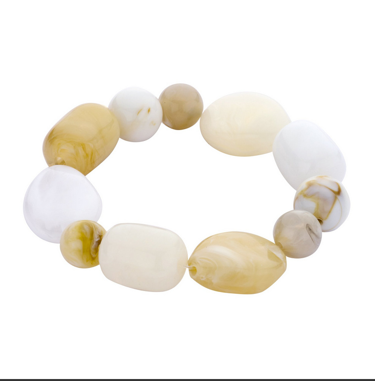 biba armband chunky kralen resin beigeDe bekende biba armbandjes op elastiek. Fijn om zelf om en af te doen doordat je geen gedoe hebt met een slutinkje dat je dicht moet prutsen.