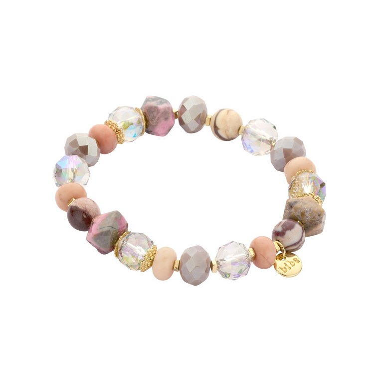 biba armband crystal en natuurstenen kralen rozeDe bekende biba armbandjes op elastiek. Fijn om zelf om en af te doen doordat je geen gedoe hebt met een slutinkje dat je dicht moet prutsen.